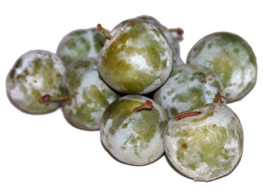 2. Verdes. Son la variedad más pequeña (2-4 cm) y la más dulce. Se aconseja su consumo con piel después de bien lavadas. Su carne es firme, jugosa y de un color amarillento. Para mi gusto este tipo de ciruelas son la variedad más sabrosa de todas. Algunas al madurar adquieren una tonalidad ligeramente dorada.